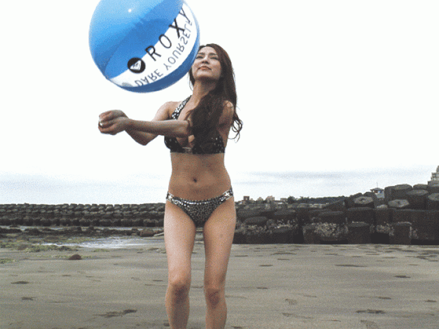 Loạt ảnh Hùng Hùng diện bikini chơi bóng chuyền trên bãi biển thu hút cánh mày râu.