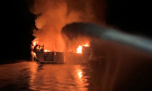 Ngọn lửa bùng phát trên tàu Conception ở ngoài khơi bang California sớm ngày 2/9, khiến 8 người thiệt mạng và 26 người mất tích.