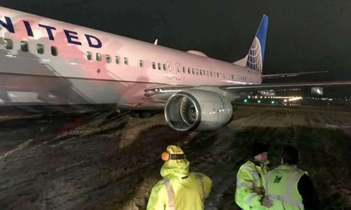 Phi cơ United Airlines chở 187 người trượt khỏi đường băng khi hạ cánh xuống sân bay ở bang Winconsin, Mỹ.