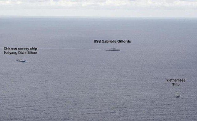 Hải quân Mỹ xác nhận tàu tác chiến ven bờ USS Gabrielle Giffords áp sát tàu khảo sát Hải Dương 4 của Trung Quốc đang hoạt động ở Biển Đông.
