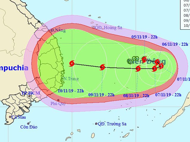 Áp thấp nhiệt đới hoạt động ở phía Đông Philippines với sức gió mạnh nhất vùng gần tâm mạnh cấp 7 (50-60 km/giờ), giật cấp 9; đang di chuyển nhanh 25 km/giờ vào Biển Đông và khả năng mạnh lên thành bão giật cấp 12, hướng vào Nam Trung bộ