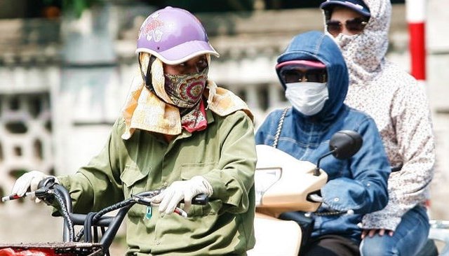 Từ hôm qua (17.5) đến nay, Hà Nội nắng như nung . Nhiệt độ đo được ngoài trời lúc 13h chiều có nơi lên đến gần 60 độ C. Người dân vật vã nằm nhà trốn nắng hoặc quấn kén kín mít nếu phải lưu thông trên đường.