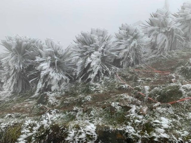 Nền nhiệt Bắc bộ giảm sâu, rét buốt về đêm và sáng, băng giá phủ kín đỉnh Fansipan