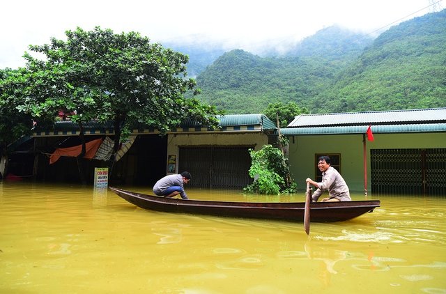 Nước cao lút đầu người trên đoạn quốc lộ 6 qua Tòng Đậu (Mai Châu, Hòa Bình), giao thông từ Hà Nội đi Sơn La, Điện Biên ách tắc.