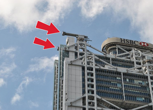 Tòa nhà ngân hàng HSBC ở Hong Kong xây dựng có bộ phận như tháp pháo trên nóc vì sợ lỗi phong thủy từ tháp 72 tầng bên cạnh.