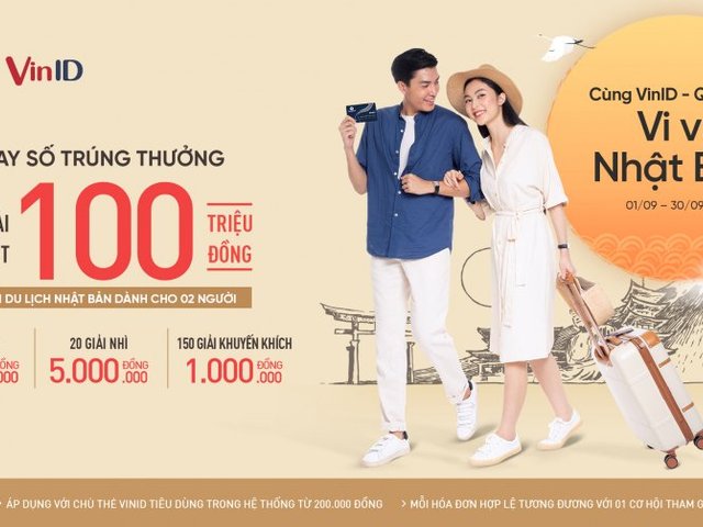 VinID “365 Ngày vui” tháng 9 mang đến cho chủ thẻ cơ hội mua sắm thả ga với tỷ lệ ưu đãi hoàn tiền lớn nhất từ trước đến nay cùng nhiều giải thưởng vô cùng hấp dẫn như chuyến du lịch Nhật Bản dành cho 2 người, 30 sổ tiết kiệm trị giá 900 triệu đồng, thẻ Gift Card VinID 100 triệu đồng...