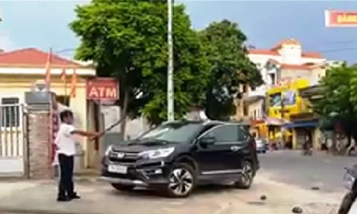 Bảo vệ cầm kiếm phá ôtô để trả đũa tài xế