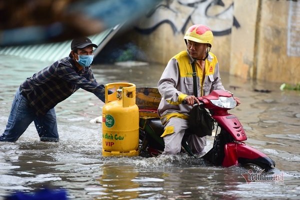 Mưa dai dẳng suốt trưa, người Sài Gòn băng băng lướt sóng