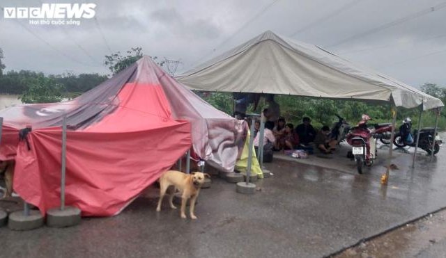 Mưa lớn kéo dài, dân Quảng Trị dựng lều bạt bên đường tránh lũ