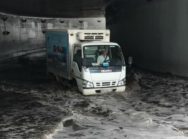 - Cơn mưa lớn bất chợt khiến hầm chui Mỹ Thủy (Q.2) bị ngập nặng, nhiều ô tô chết máy nằm trong hầm.