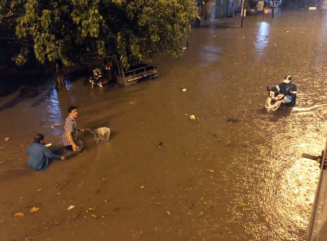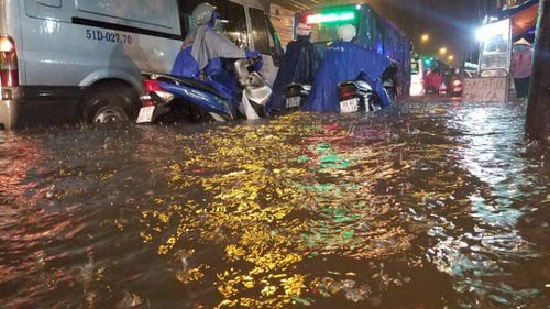 Đường Sài Gòn ngập lút bánh xe trong đêm dù có siêu máy bơm