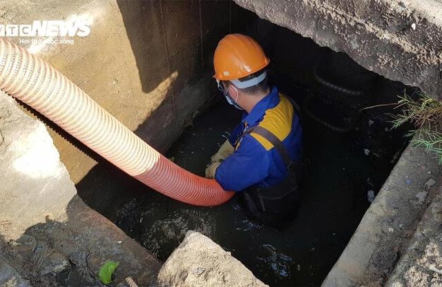 Công nhân ngâm mình trong nước bẩn, nạo vét cống,...