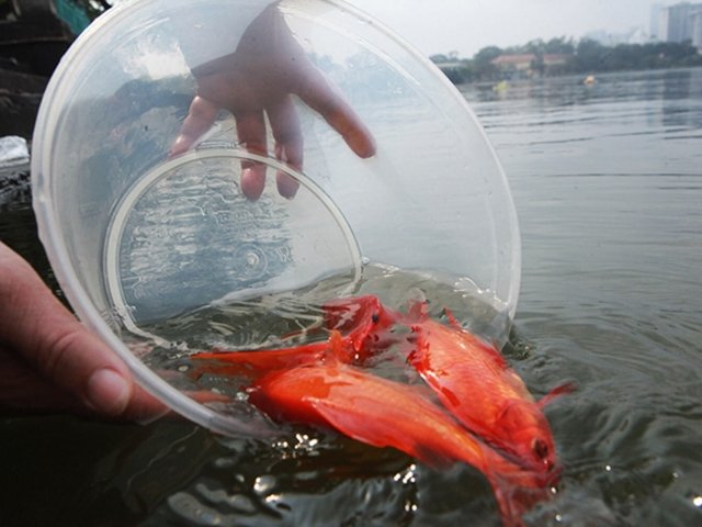 Thả cá chép đúng cách trong ngày ông Công ông Táo