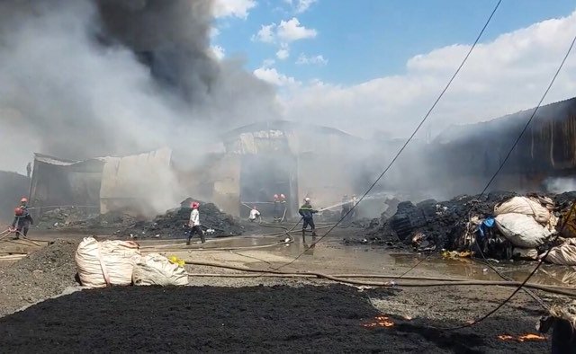 Ngọn lửa xuất phát từ một nhà xưởng chứa phế liệu ở huyện Bình Chánh (TP.HCM) rồi lan sang một nhà xưởng khác khiến cả 2 bị thiêu rụi trong ngày vía Thần tài.