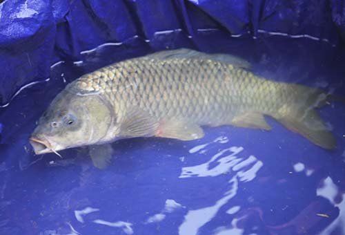 Cả trăm người xô đẩy để sờ cá chép lấy may
