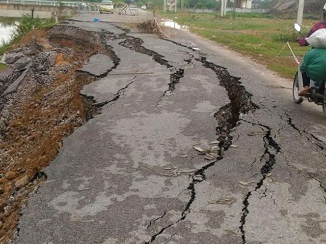 Đoạn đường gần 70 tỷ đồng vừa xong đã vỡ vụn ở Nghệ An. Dự án đường nối khu di tích Lê Hồng Phong với xứ ủy Trung Kỳ (huyện Hưng Nguyên, Nghệ An) mới thông xe đã nứt toác, sạt lở hơn 100m.