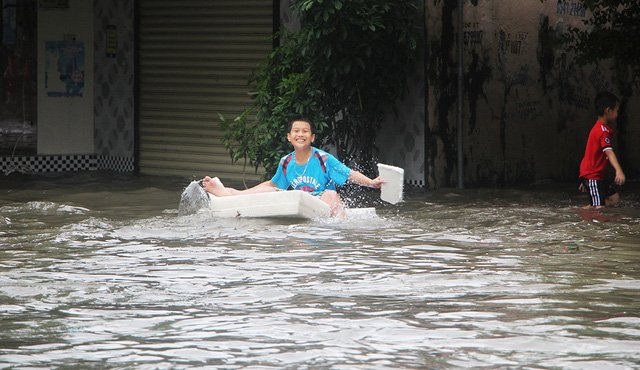 Nhiều tuyến đường trên TP.Vinh (Nghệ An) ngập nước đã tạo nên nguồn cảm hứng cho “cư dân mạng xã hội”, từ đó xuất hiện những bức ảnh vô cùng độc đáo.