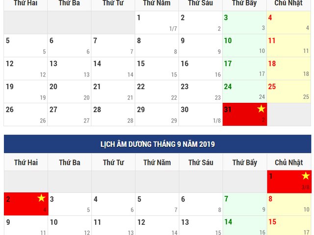 Nghỉ lễ Quốc khánh 2/9, do ngày lễ rơi vào thứ hai, nếu cộng thêm 2 ngày nghỉ cuối tuần, người lao động được nghỉ tổng cộng 3 ngày, từ thứ Bảy 31/8 đến thứ Hai ngày 2/9.