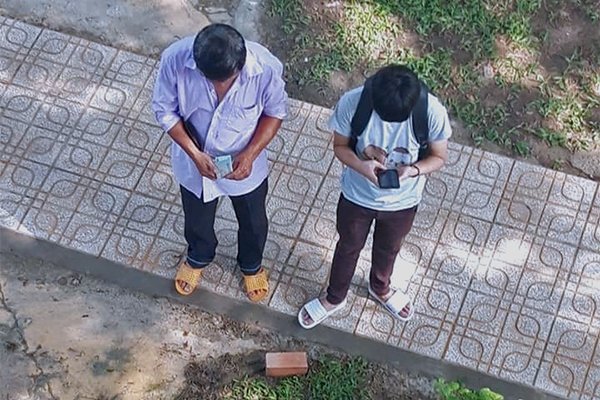 Hình ảnh người cha đi đôi dép tổ, đứng đếm tiền trong ngày đưa con đi nhập học, đăng tải đúng dịp lễ Vu Lan khiến nhiều người xúc động.