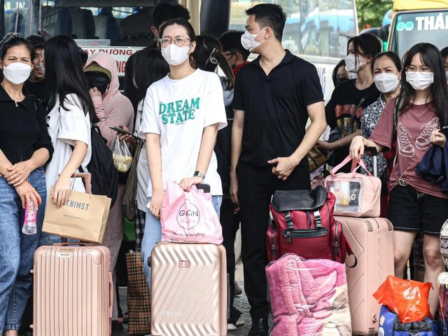 Người dân lỉnh kỉnh đồ đạc đổ ra các bến xe rời Thủ đô về quê nghỉ lễ