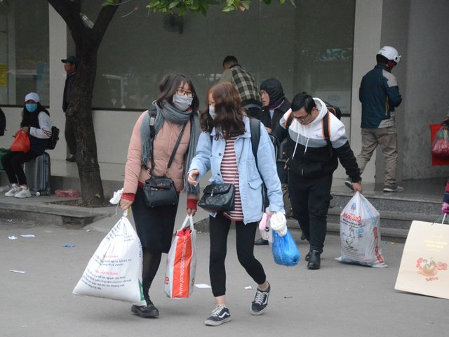 Người dân co ro trong giá rét trở lại Hà Nội sau kỳ nghỉ tết Dương lịch kéo dài