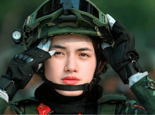 Phương Ngọc - hạ sĩ thuộc khối diễu binh Nữ chiến sĩ Biệt động Sài Gòn đang gây chú ý nhờ vẻ ngoài nổi bật khi chuẩn bị cho lễ kỷ niệm 50 năm thống nhất đất nước.