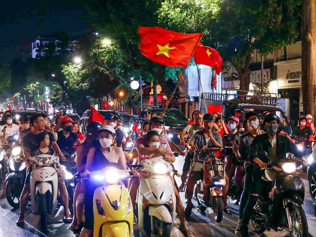Người hâm mộ đổ ra đường mừng chiến thắng của tuyển Việt Nam