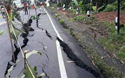 Động đất 6 độ khiến đường nứt gãy ở Indonesia