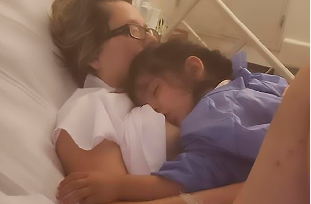 Con gái 2 tuổi đòi bú, Maria Laura Ferreyra 42 tuổi, đang hôn mê trên giường bệnh bỗng đưa tay tự vén áo cho con bú mẹ.