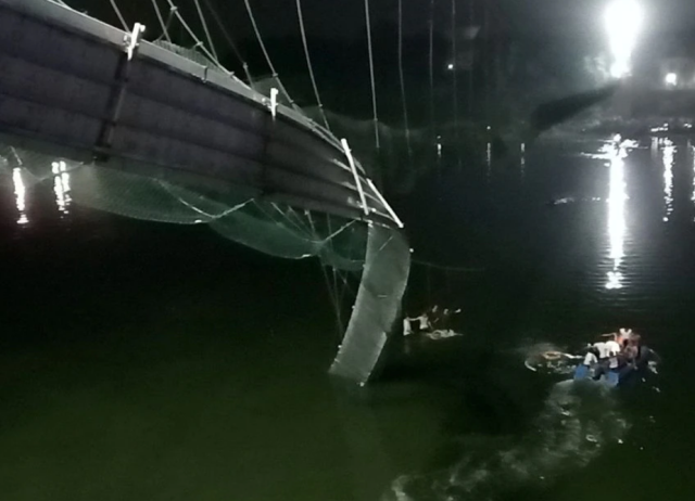 Ít nhất 81 người thiệt mạng khi cây cầu đông người đi bộ tham gia lễ hội bị sập ở bang Gujarat, miền Tây Ấn Độ hôm 30/10, khiến họ rơi xuống dòng sông bên dưới.
