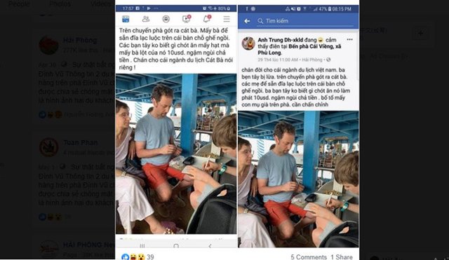 Sở Thông tin và Truyền thông thành phố Hải Phòng đang xác minh chủ tài khoản facebook tung tin du khách nước ngoài phải bỏ 10 USD để mua đĩa lạc luộc trên phà Gót - Cái Viềng đi Cát Bà, trong dịp nghỉ lễ 30.4 - 1.5.