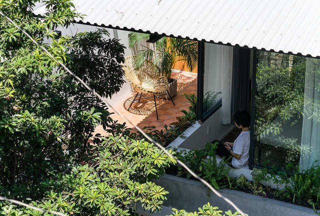 Căn nhà mang lại cảm giác hoàn toàn mát mẻ, trái ngược với thời tiết nắng nóng tại Thành phố Hồ Chí Minh