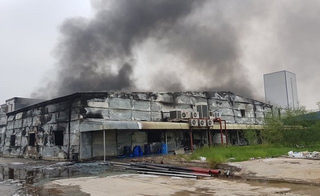 Lửa thiêu rụi phân xưởng chứa chất lỏng của nhà máy Syntech, gây thiệt hại khoảng 60 tỷ đồng.