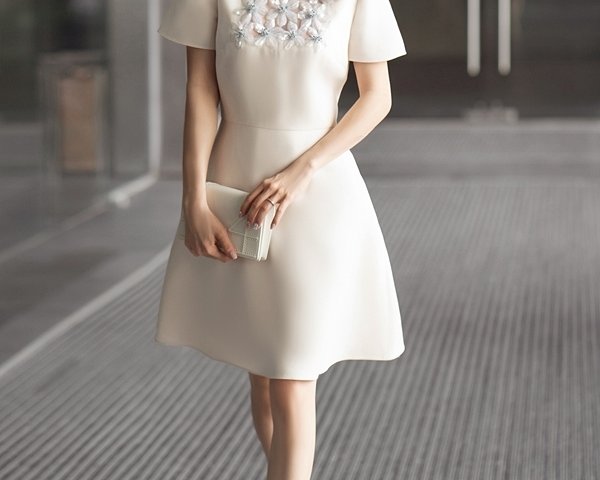 Diễn viên Nhã Phương chọn váy và clutch, tổng cộng 170 triệu, khi chấm chung kết cuộc thi 'Nhà biên kịch tài năng', hôm 19/9.