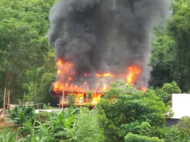 Ngôi nhà của anh Quàng Văn Dịch (bản Co Sáng, xã Quài Nưa, huyện Tuần Giáo, tỉnh Điện Biên) được làm hoàn toàn bằng gỗ nghiến có giá trị khoảng 800 triệu đồng, vừa bị ngọn lửa thiêu rụi hoàn toàn.