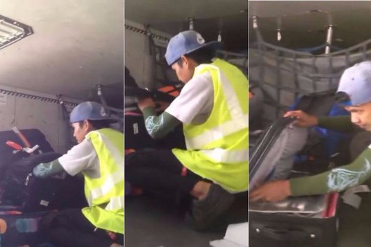 Không biết bị quay phim, nhân viên sân bay vô tư trộm hành lý