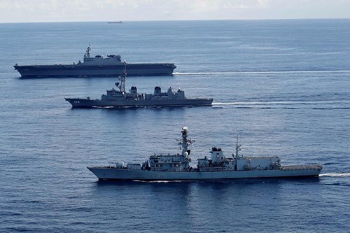 Trên đường trở về sau khi tham gia tập trận với Anh ở Ấn Độ Dương, tàu chở trực thăng Kaga của Nhật Bản ngày 26/9 đi qua Biển Đông.