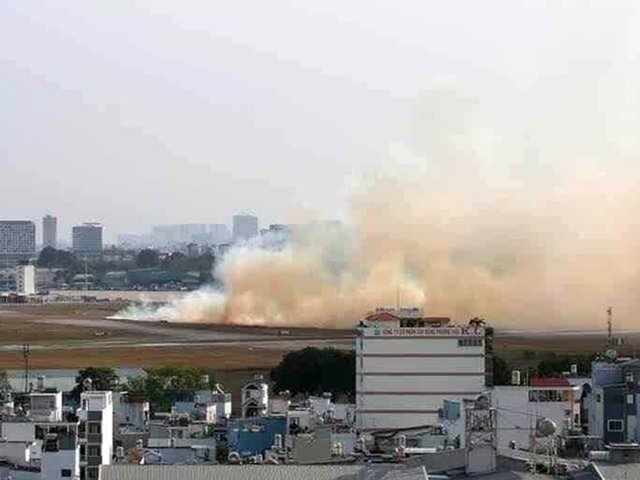 Máy bay Airbus A321, số hiệu VN-A392 chở 152 khách chuẩn bị cất cánh từ Tân Sơn Nhất đi Campuchia bị nổ lốp, cháy vạt cỏ rộng bên đường băng.