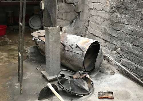 Chiếc nồi hơi chế biến đậu phụ bất ngờ phát nổ làm bay ngói một căn nhà và làm hai người bị thương.