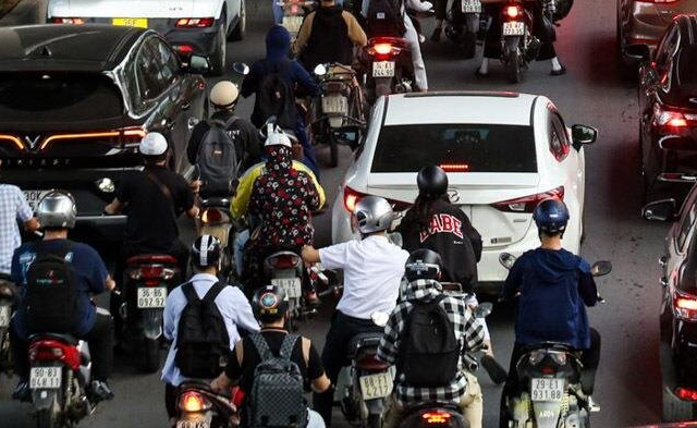 Dòng xe cộ nối đuôi nhau rời Thủ đô