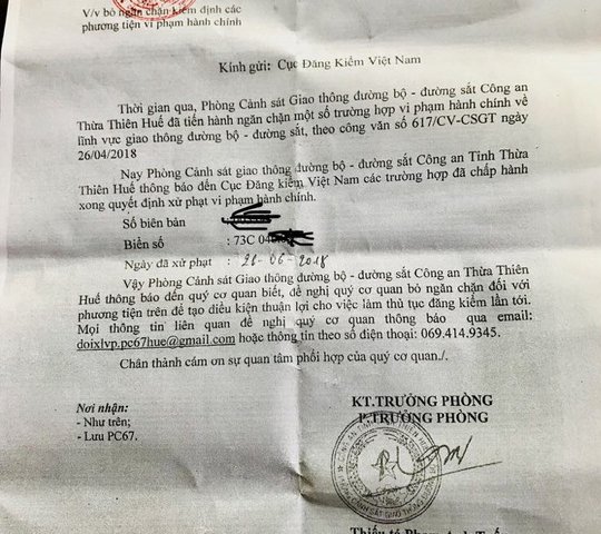 Dù đã tiến hành nộp phạt vi phạm hành chính về lĩnh vực giao thông gần một năm trời nhưng cơ quan đăng kiểm vẫn chưa xóa thông báo ngăn chặn khiến cho chiếc xe ôtô không được kiểm định, chủ xe phải vất vả đi gần 200 km để xin lại xác nhận nộp phạt