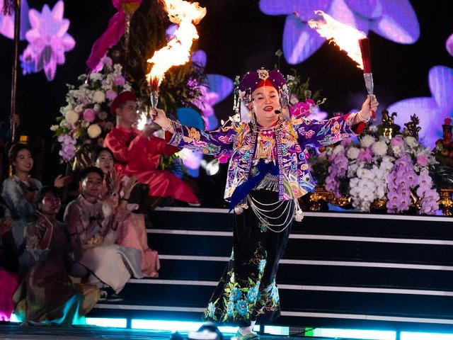 Xuân Hinh mang làn điệu hát văn cùng phần xuất hiện đặc biệt trong “Bắc Bling” của Hòa Minzy, tạo dấu ấn độc đáo tại đại nhạc hội “V Concert – Rạng rỡ Việt Nam”.