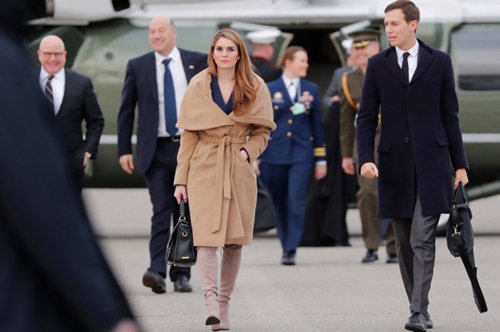 Phong cách thời trang nổi bật giúp giám đốc truyền thông Nhà Trắng Hope Hicks thu hút sự chú ý khi có mặt ở Thụy Sĩ.