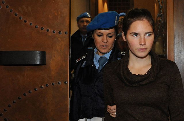 Kercher nằm trên vũng máu giữa sàn nhà, được phủ một lớp chăn mỏng. Báo cáo của cảnh sát cho thấy cổ của nạn nhân xuất hiện vết cắt của một vật thể sắc nhọn như dao hoặc mảnh kính.