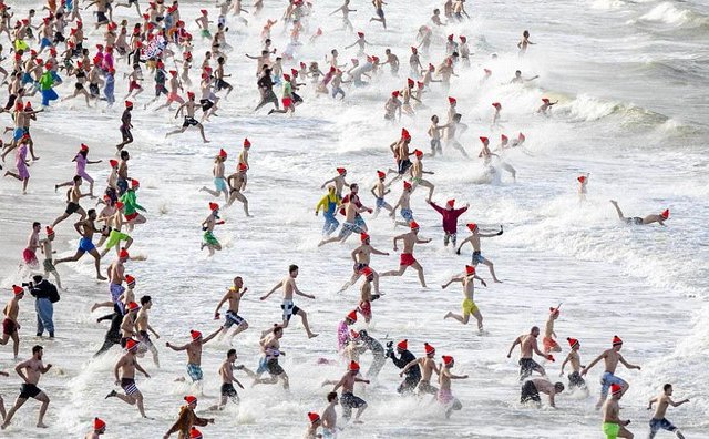 Lao xuống làn nước lạnh vào đầu năm dường như trở thành phong tục ở khắp các quốc gia trên thế giới, từ châu Á đến châu Âu, châu Mỹ.