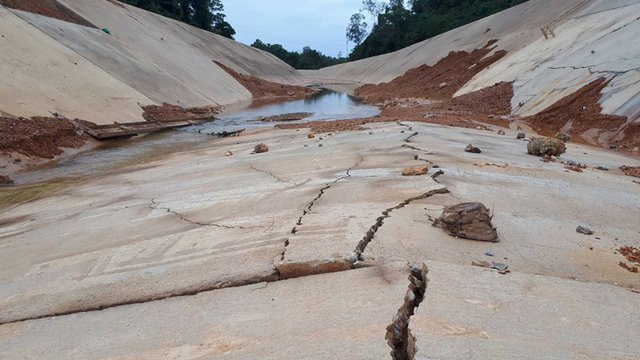 - Ông Nguyễn Trọng Tâm, cán bộ kĩ thuật của Ban QL dự án các công trình NN&PTNT tỉnh Hà Tĩnh khẳng định kênh, đáy bê tông dày 12cm gãy, vỡ vụn là do nước ngầm. Đây là sự cố do thiên tai nên bên bảo hiểm công trình sẽ tính toán đền bù.
