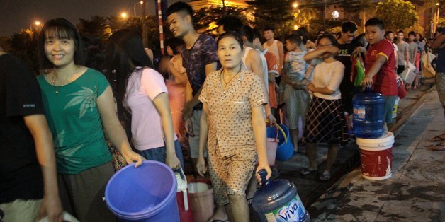 Ảnh: Dân Hà Nội rồng rắn xếp hàng trong đêm đợi lấy từng xô nước sạch miễn phí