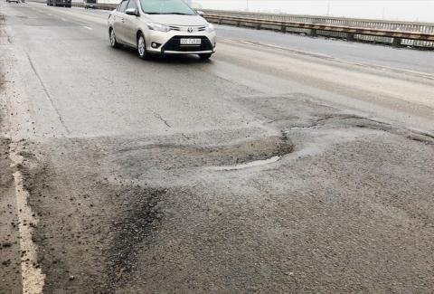 Hàng năm Tổng cục Đường bộ chi nhiều tỷ đồng sửa mặt cầu Thăng Long nhưng tình trạng lún, nứt trơ khung thép vẫn xảy ra.