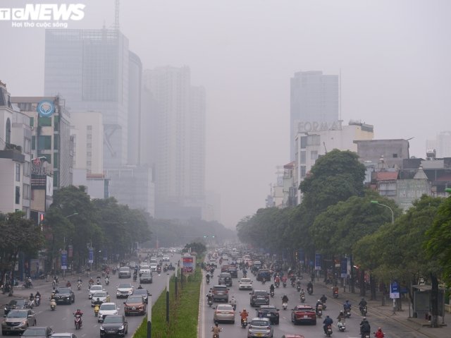 Ảnh: Không khí ô nhiễm mức báo động, trời Hà Nội mờ mịt như Sa Pa