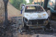 Chiếc ô tô của sư thầy trụ trì chùa Bảo Khánh (Hải Phòng) bốc cháy trơ khung sắt sau đêm lễ Phật đản 2018 tại nhà chùa.